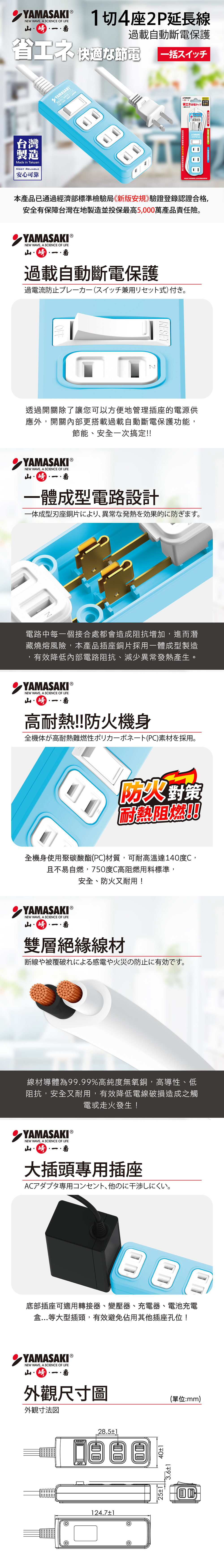 ●1切4座,過載自動斷電保護
